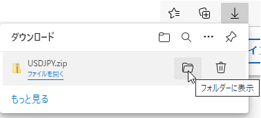 下部に表示される場合には、▽をクリック → フォルダを開くを選択しましょう