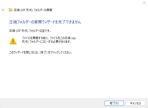 Windows標準機能での解凍作業で、エラー表記が出る場合